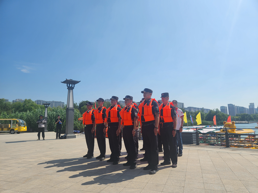 為切實(shí)提升防溺水事故應(yīng)急處置和救援能力,有效預(yù)防和減少溺亡事故,進(jìn)一步做好齊盛湖公園安全保障工作,2023年8月4日,市保安公司在盛湖舉行“防溺水應(yīng)急救援演練”。市保安公司黨委委員、副總經(jīng)理李鵬,市城市管理局黨組成員、市公園城市服務(wù)中心主任伊繼忠,齊盛湖公園管理辦公室科長王方福出席活動。