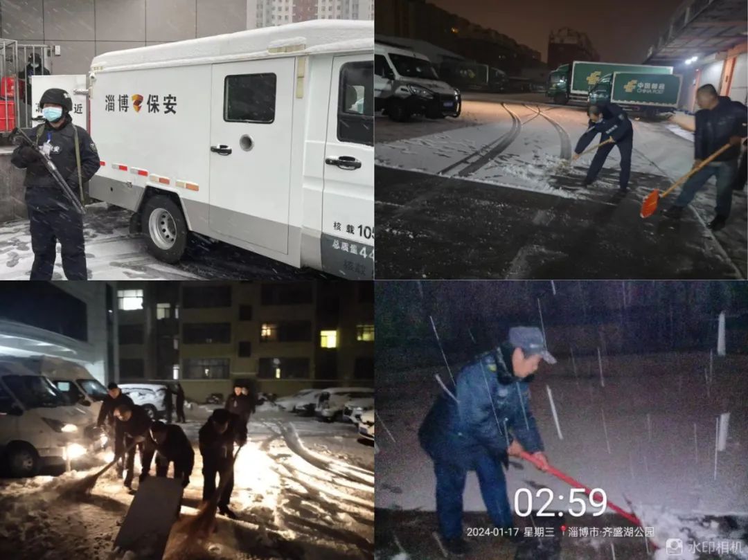 盡管寒風(fēng)刺骨,雪花紛飛,市保安公司全體員工提前到崗,把重點(diǎn)區(qū)域的積雪有序、高效的清理干凈,為人們的雪天出行保駕護(hù)航,讓社會感受到風(fēng)雪天淄博保安送出的一份溫暖。