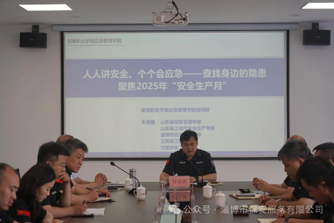 為深入貫徹市國(guó)資委“安全生產(chǎn)月”活動(dòng)要求,6月4日,市保安公司聚焦“人人講安全、個(gè)個(gè)會(huì)應(yīng)急——查找身邊的隱患”,邀請(qǐng)山東省應(yīng)急管理專家、正高級(jí)工程師,山東齊安檢測(cè)技術(shù)有限公司安全技術(shù)部經(jīng)理朱登國(guó)進(jìn)行專題授課,市保安公司黨委書(shū)記、董事長(zhǎng)付志欣主持,公司黨委委員,各部室、中心、子公司,各大隊(duì)負(fù)責(zé)人及安全分管領(lǐng)導(dǎo)參會(huì)。