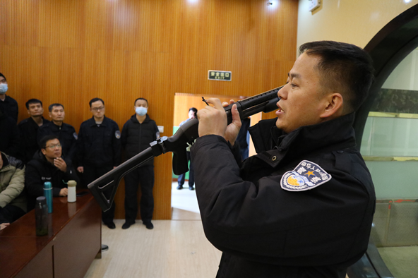本次考核培訓(xùn)共8期,金融護(hù)衛(wèi)中心424人參加,由市公安局治安支隊(duì)和特警支隊(duì)教官統(tǒng)一組織考核培訓(xùn)。具體考核內(nèi)容包括槍支使用理論、槍支分解組合、體能、警戒站位和實(shí)彈射擊考核。