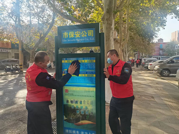 隨后,志愿者們又來到駐地附近的公共道路開展公交站牌和公益廣告牌衛(wèi)生清理工作,通過開展系列志愿服務(wù)活動(dòng),改善城市環(huán)境的同時(shí),引導(dǎo)廣大市民提高環(huán)衛(wèi)意識(shí),為營(yíng)造整潔有序、環(huán)境優(yōu)美的城市環(huán)境貢獻(xiàn)了淄保力量。