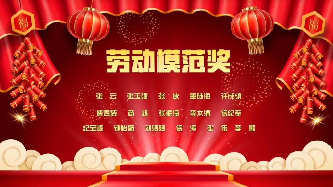 勞動(dòng)模范代表上臺(tái)領(lǐng)獎(jiǎng)