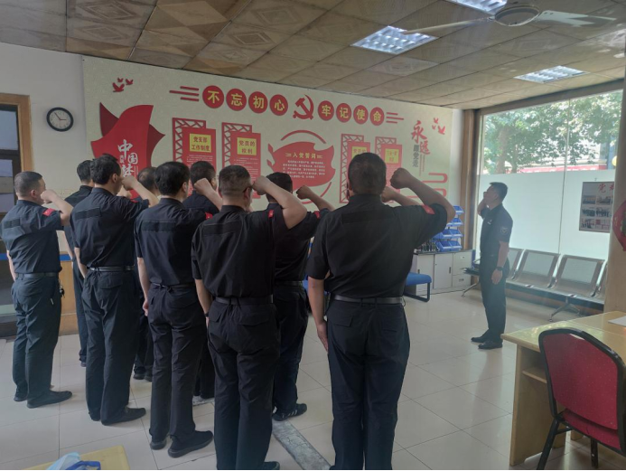 為喜迎中國共產(chǎn)黨建黨102周年,充分展現(xiàn)我黨的光輝歷程,同時激勵黨員群眾踐初心、強(qiáng)黨性、砥礪奮進(jìn),切實(shí)增強(qiáng)基層黨組織的凝聚力、戰(zhàn)斗力,充分發(fā)揮戰(zhàn)斗堡壘作用。在金融護(hù)衛(wèi)中心工行大隊(duì)黨支部精心安排部署下,全體黨員同志在紅色活動的氛圍中重溫時代經(jīng)典,回顧百年風(fēng)華,為黨獻(xiàn)上美好祝愿。“我志愿加入中國共產(chǎn)黨,擁護(hù)黨的綱領(lǐng),遵守黨的章程,履行黨員義務(wù),執(zhí)行黨的決定......”在鮮紅的黨旗下,金融護(hù)衛(wèi)中心工行大隊(duì)全體黨員莊嚴(yán)地舉起右手,握拳宣誓,每一句都是全新的心靈洗禮,憶初心,銘記莊嚴(yán)的承諾,牢記共產(chǎn)黨的政治責(zé)任、工作擔(dān)當(dāng)和光榮使命,以實(shí)際行動恪守對黨的忠誠,以積極進(jìn)取的心態(tài)踐行入黨誓詞,為譜寫保安公司高質(zhì)量發(fā)展新篇章作出積極貢獻(xiàn)。